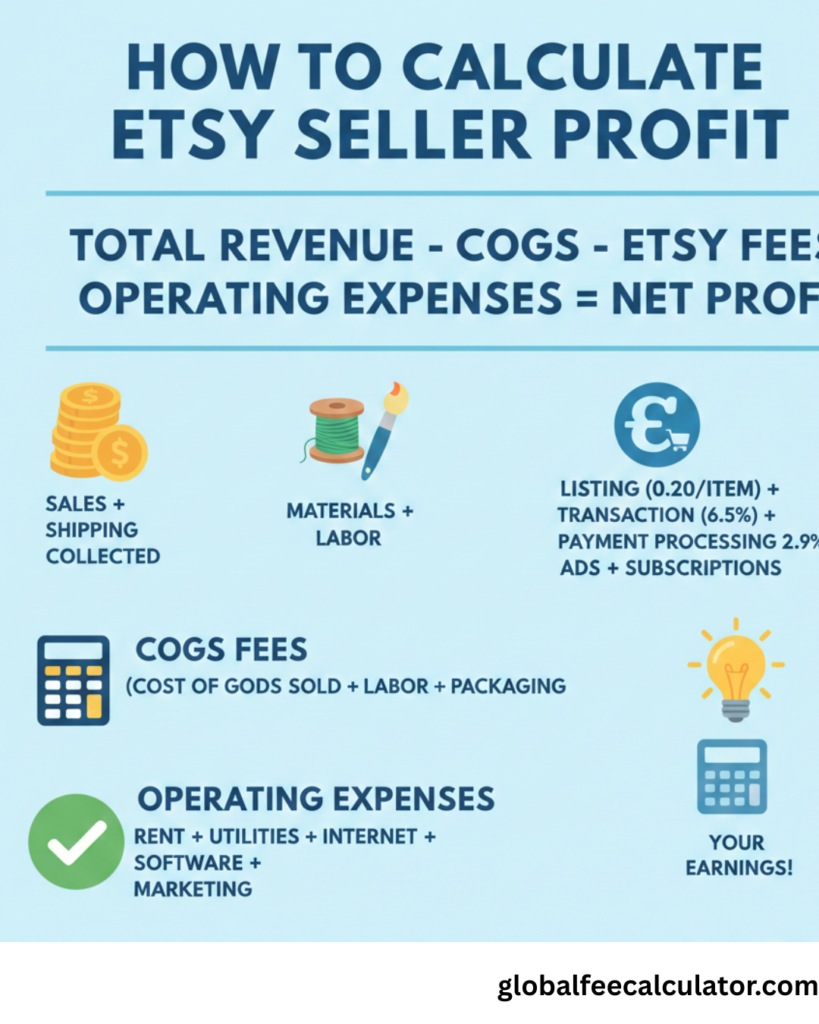 While manual math works, using a tool to calculate Etsy fees accurately makes profit estimation much easier.